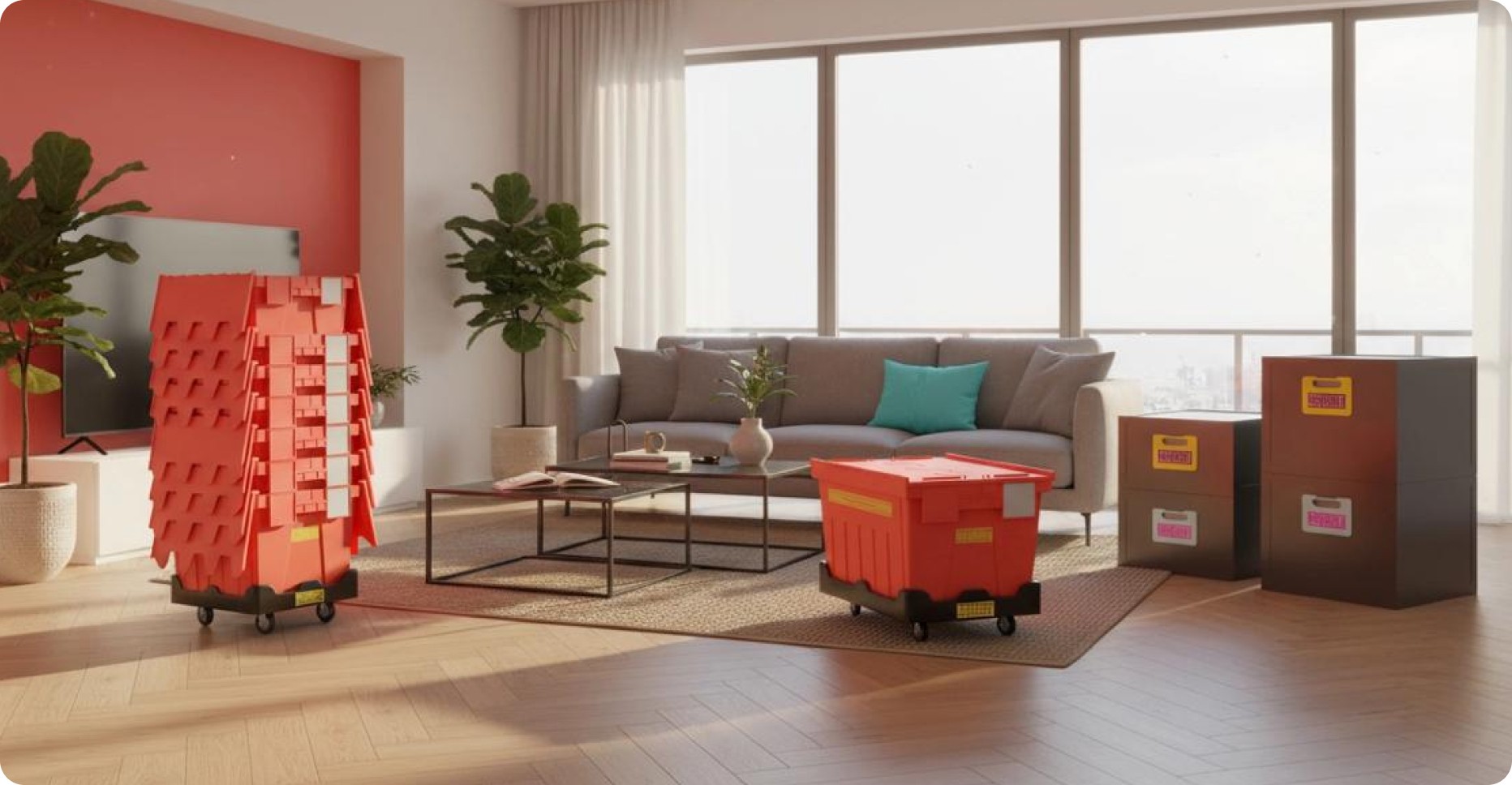 במקום קרטונים חד־פעמיים שמתבלים, נקרעים ונזרקים – אנחנו משתמשים בארגזים עמידים, איכותיים ונקיים שממשיכים לשרת עוד ועוד בתים. זה חוסך משאבים, מפחית פסולת ויוצר פתרון חכם ויציב לאורך זמן.